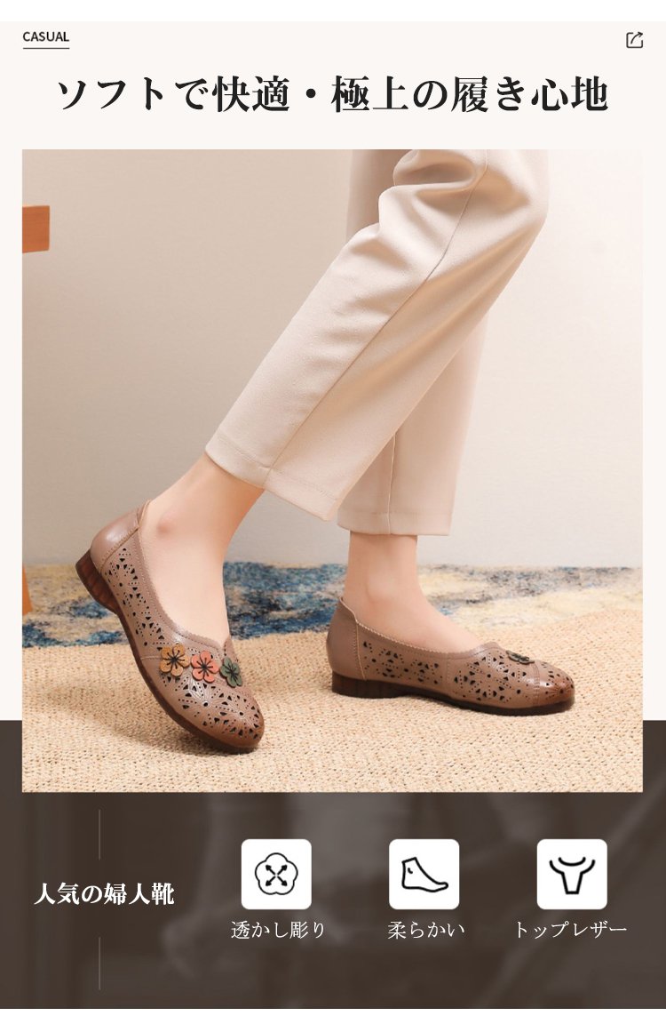 ラウンドトゥ透かし彫りモカシン