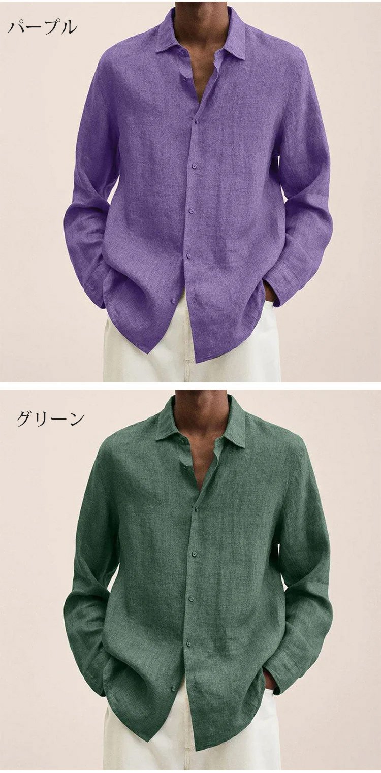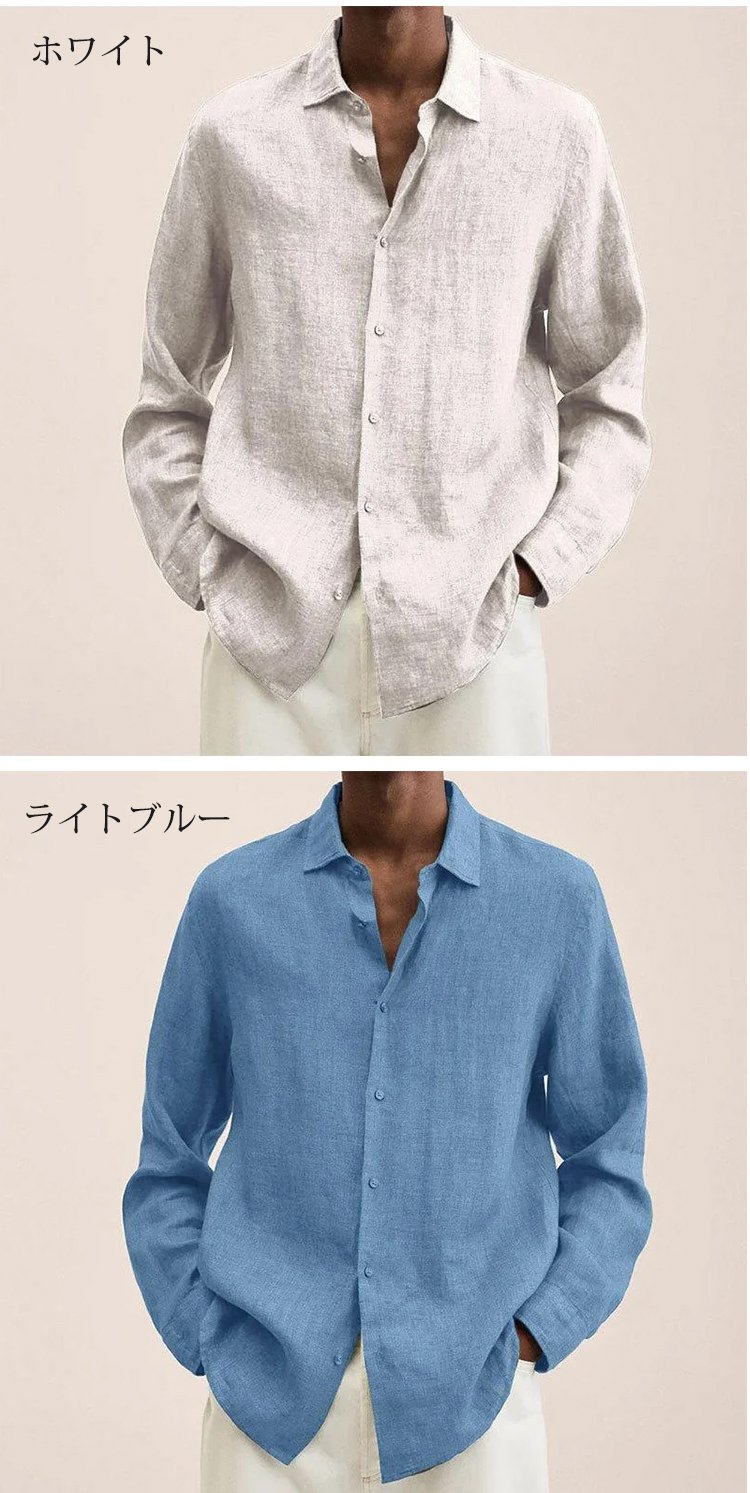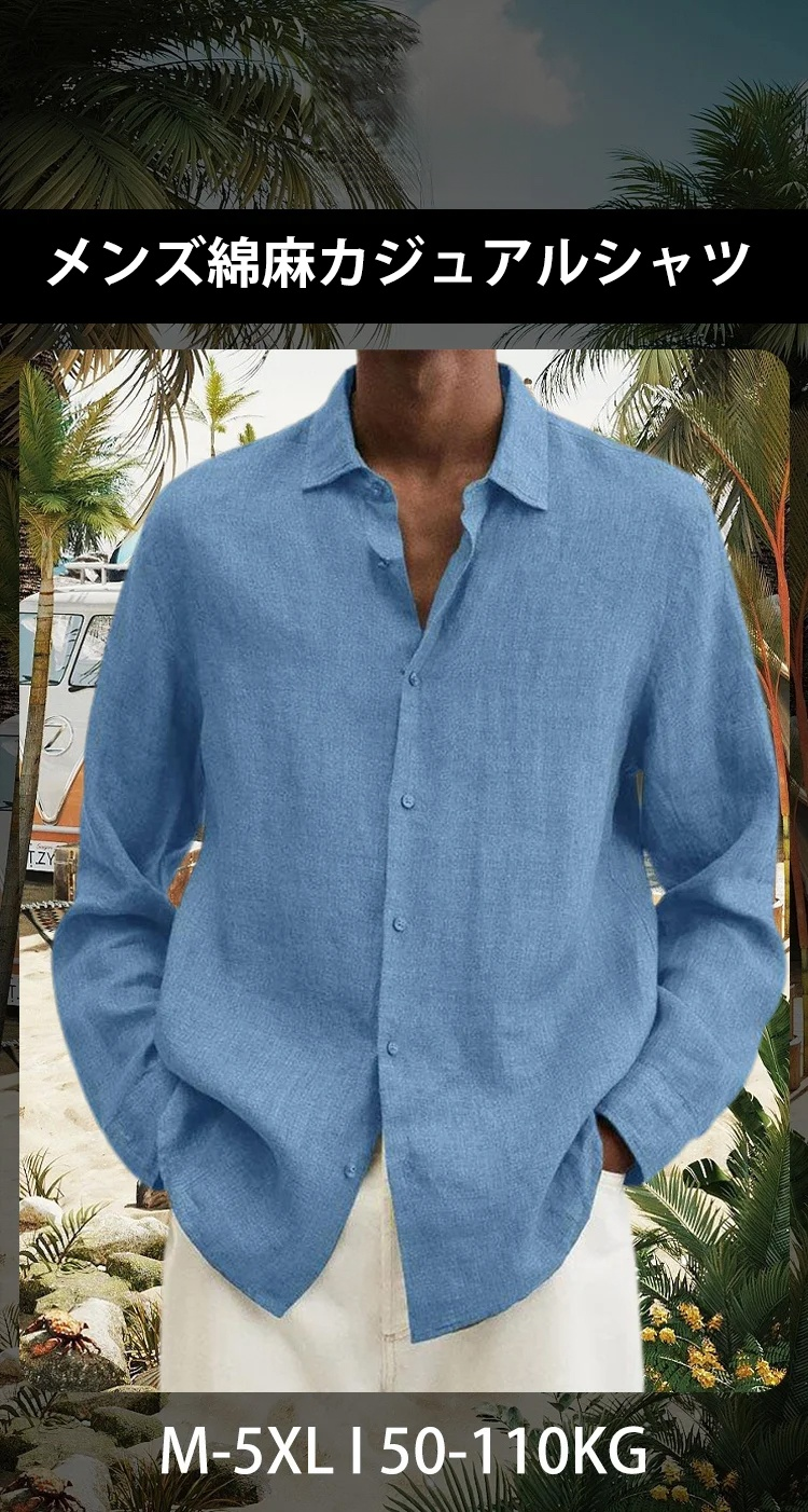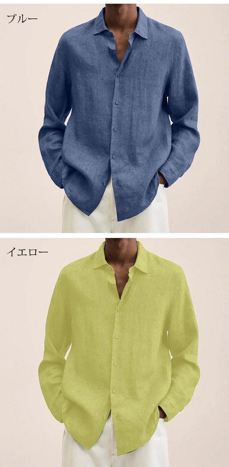 メンズ綿麻カジュアルシャツ
