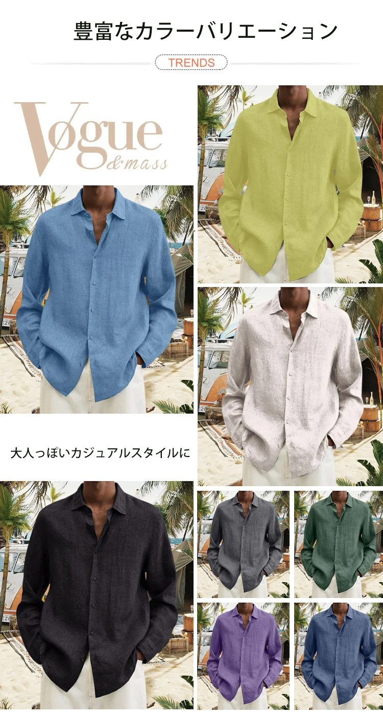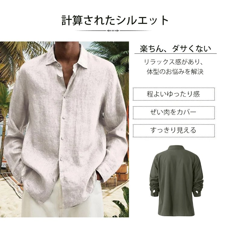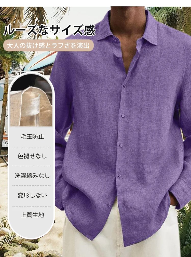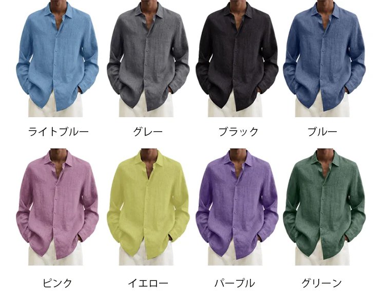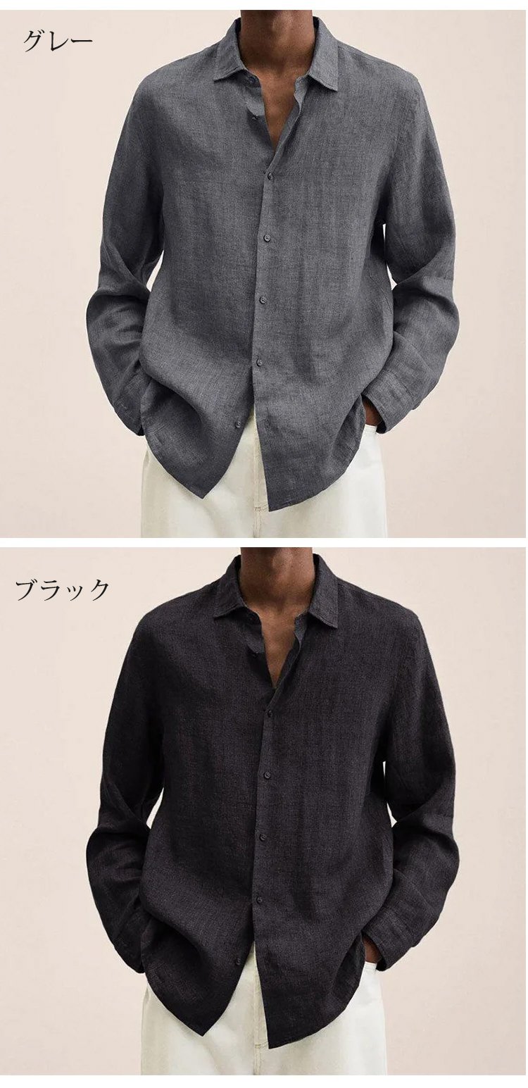 メンズ綿麻カジュアルシャツ