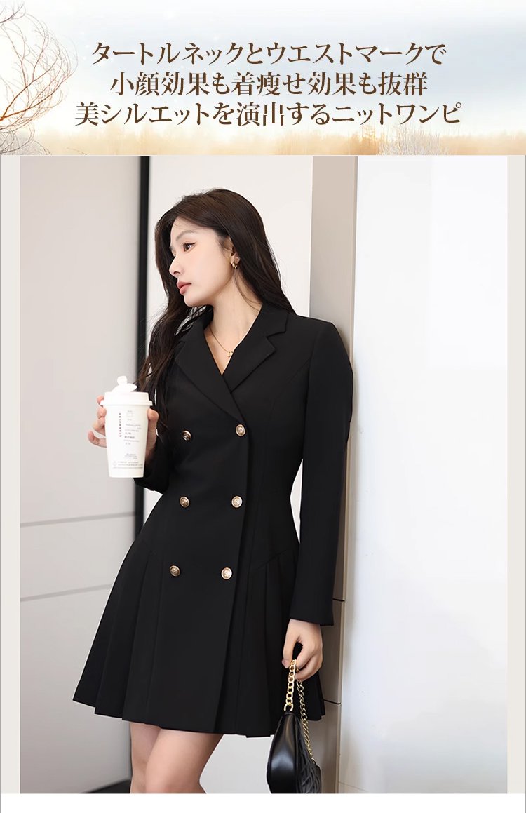 大人っぽいダブルブレストスーツ風ワンピースレディース