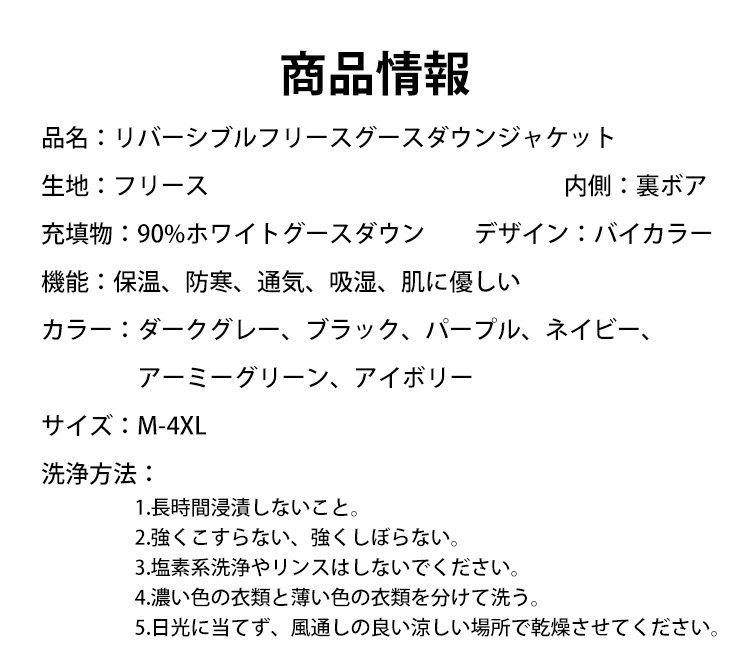 リバーシブルフリースグースダウンジャケット